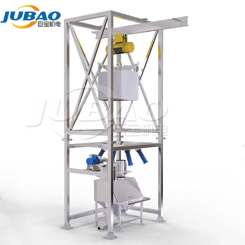 4.对细粉物料该套设备可以内置或外接除尘器,以便将倾倒过程中产生的粉尘滤除,并将洁净尾气排入大气,使工人能在清洁的环境中轻松地工作。如果是干净的颗粒料,粉尘含量少,在排气口安装聚酯滤芯就可以达到除尘目的,无需除尘器;