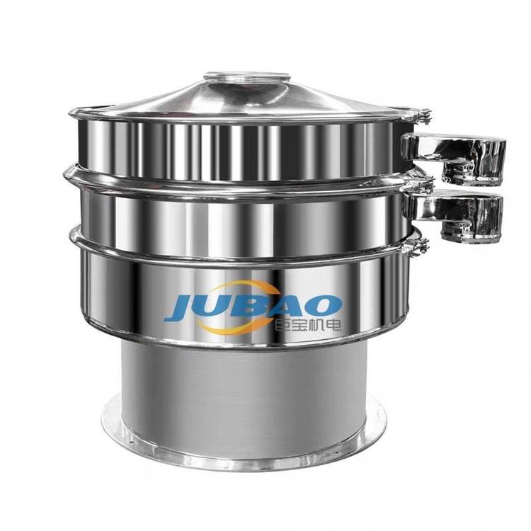 三元旋振筛,由直立式电机作激振源,电机上、下两端安装有偏心重锤,将电机的旋转运动转变为水平、垂直、倾斜的三次元运动,再把这个运动传递给筛面。调节上、下两端的相位角,可以改变物料在筛面上的运动轨迹。