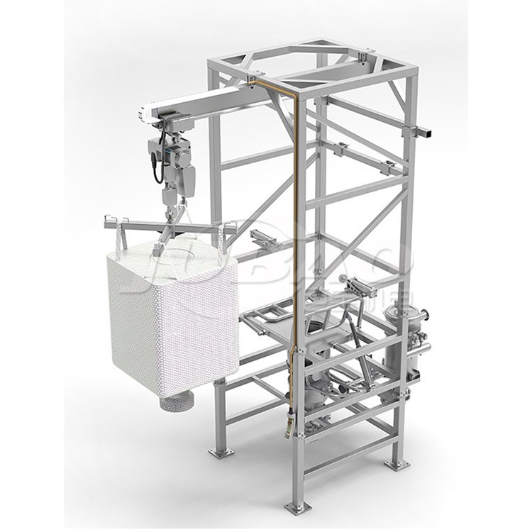 技术特点1、拆包机整体结构设计紧凑,精巧美观,操作方便,消耗功率小。2、底部振动装置能较好的保证卸料顺畅,防止物料滞留。3、吨袋拆包机操纵方便舒适,有效降低工人的劳动强度,提高工作效率。4、扬尘控制效果好。全封闭型可实现同步收尘,在拆袋机工作期间,无粉尘外泄。5、拆包后残袋内无物料。6、可配置多元化的后续输送设备(气力输送、螺旋输送、管链输送、皮带输送)